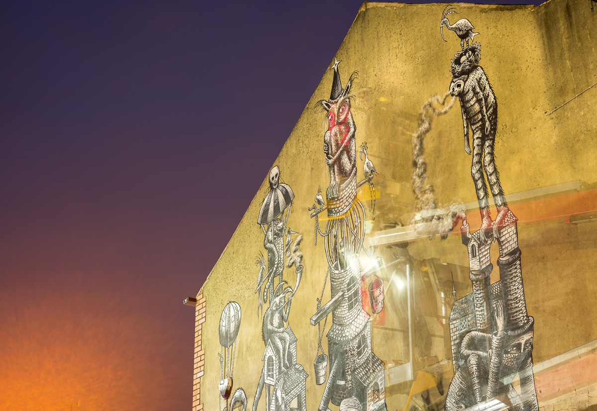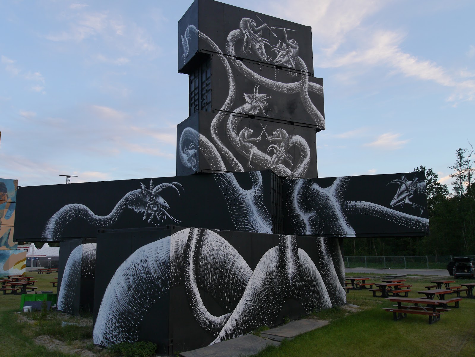 Painting in slightly more hostile conditions compared to Canada! Astonishingly beautiful place to be able to paint. Walking home at night watching the Northern lights. Painted for Wall Poetry 2016.