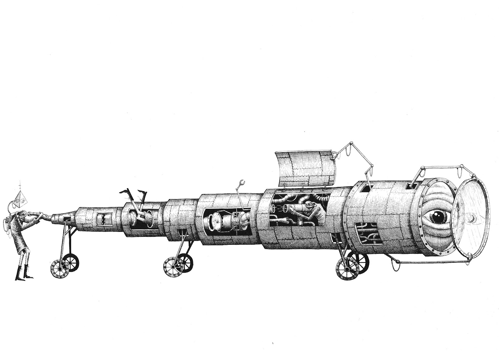 It's been very wet here in Sheffield the past few weeks so I've had a chance to catch up on some drawing. The first one is a drawing based on the salmon i painted in Ireland this year. The second picture is based on the telescope i painted in Croatia. (Both are a3 size and will be double page spreads in the book.)
